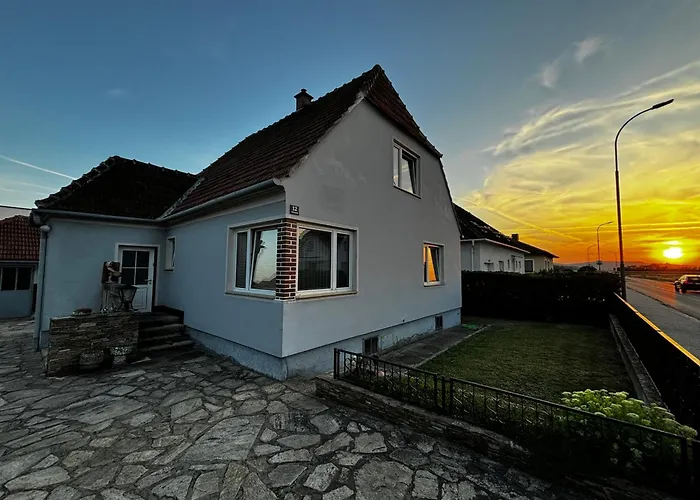 Gemuetliches Einfamilienhaus Mit Garten villa includes an outdoor dining area with a toaster, an oven, and a cooktop. The restaurant Ahrenberger Kellergasse is located 6 minutes' walk away and serves Austrian dishes. The holiday home is 250 m from Gemeinlebarn Volksschule bus stop and within reach of Gemeinlebarn train station.